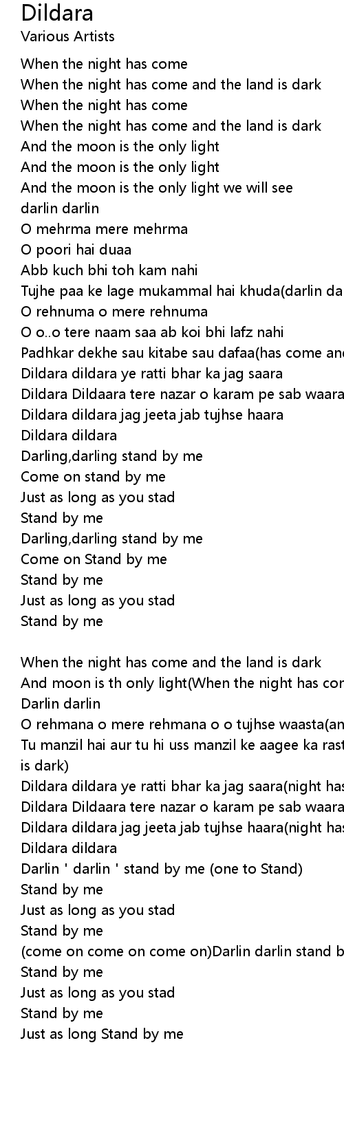 | Dildara Dildaara tere nazar o karam pe sab waara night has come | |