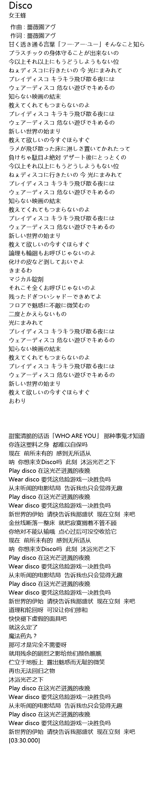 | [02:59.000] | Play disco 在这光芒迸溅的夜晚 |