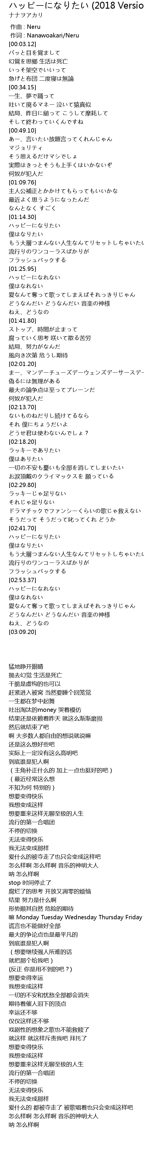 | [02:53.38] | ハッピーになれない |