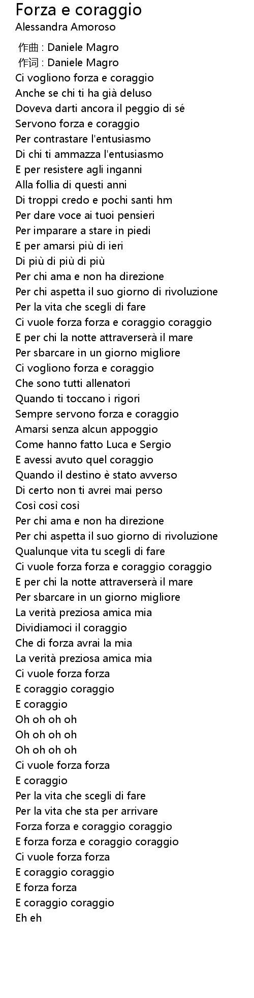 | [02:02.11] | Ci vuole forza forza e coraggio coraggio |