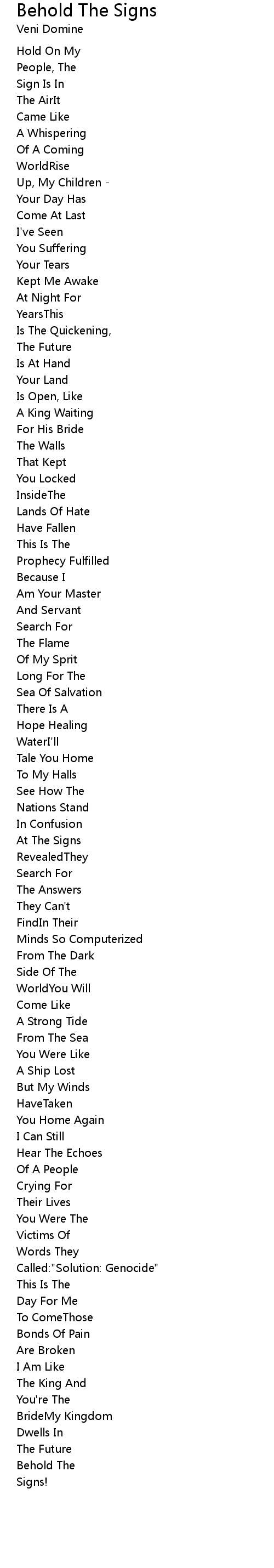 | 歌曲 | Behold The Signs |