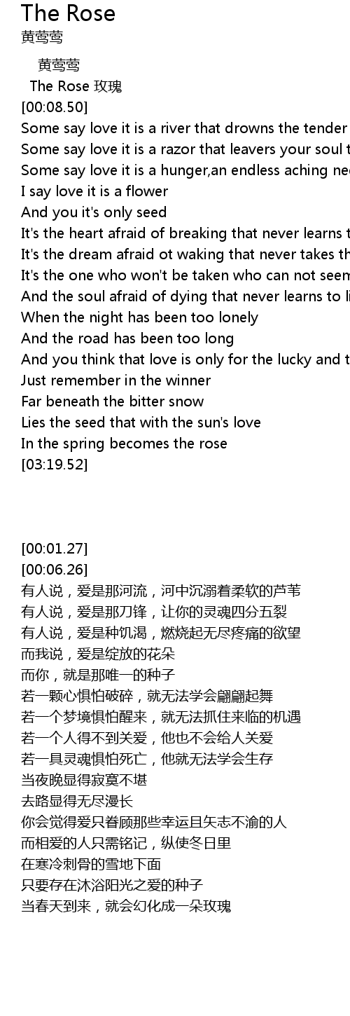 | [00:06.26] | The Rose 玫瑰 |