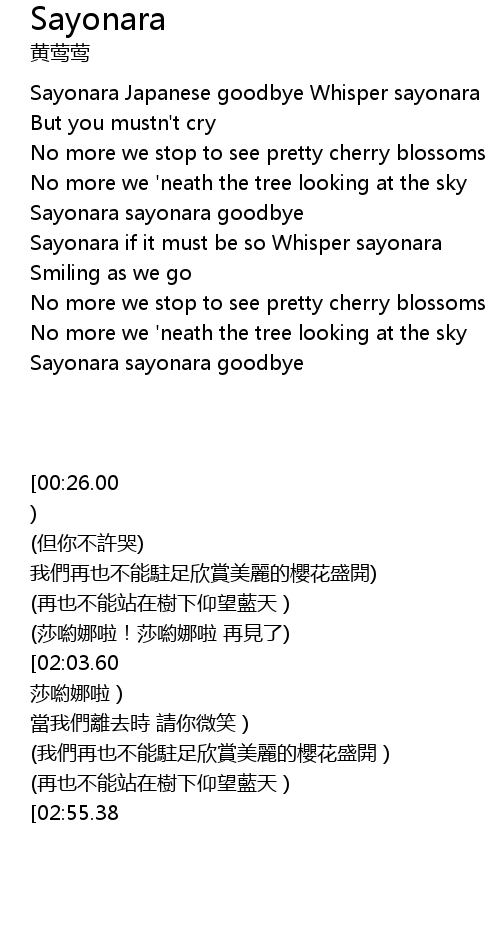 | [00:26.000] | Sayonara Japanese goodbye Whisper sayonara |