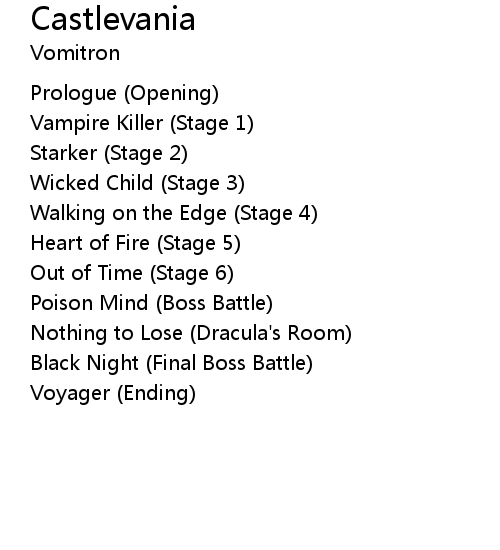 | [00:08.500] | Vampire Killer (Stage 1) |