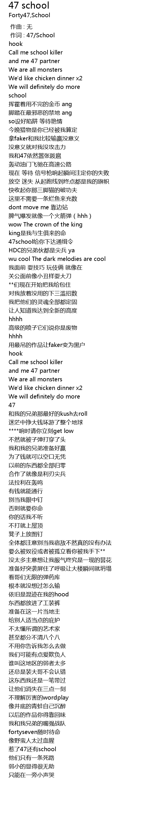 | [00:01.000] | zuò cí : 47 School |