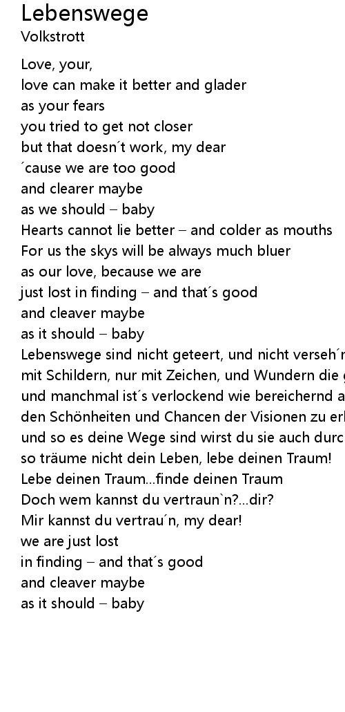 | Lebenswege sind nicht geteert, und nicht verseh n | |