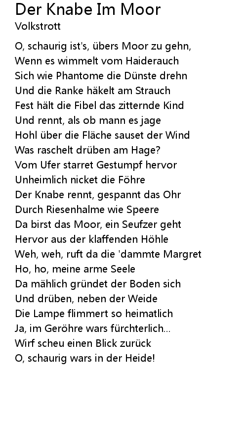 | O, schaurig ist' s, ü bers Moor zu gehn, | |