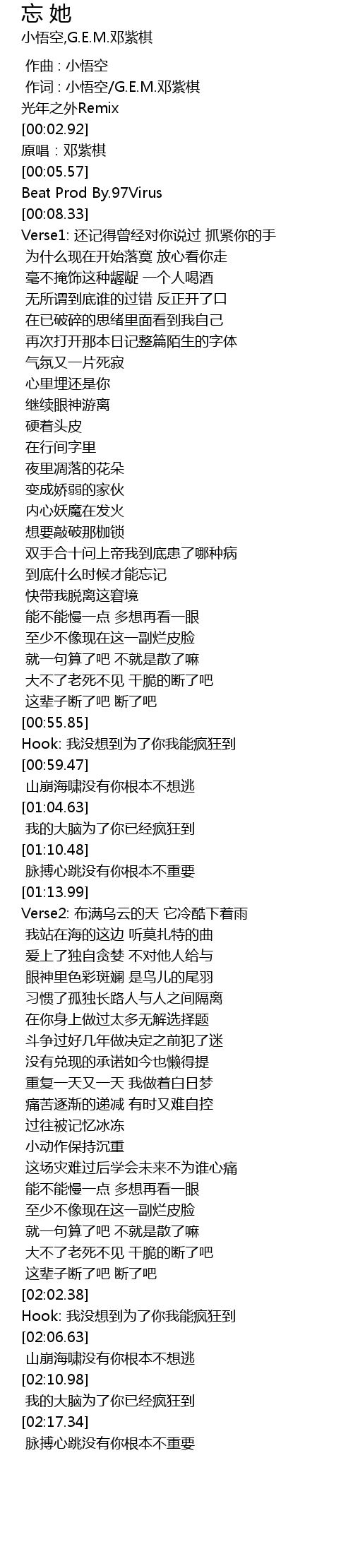 | [00:06.72] | Beat Prod By.97Virus |