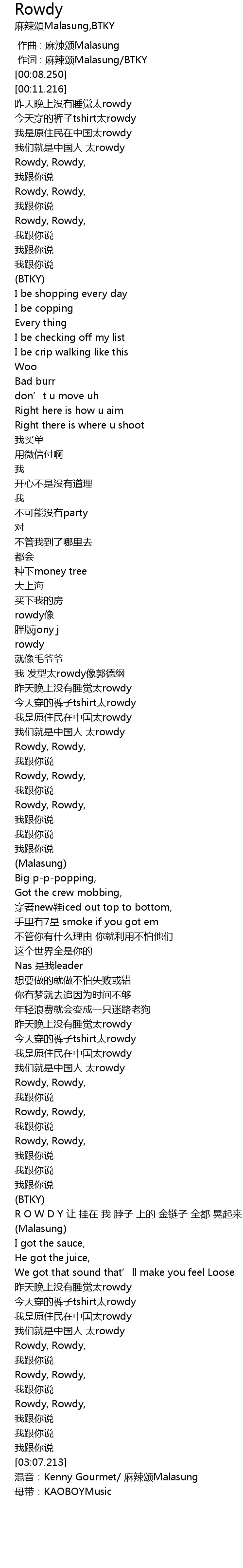 | [03:00.542] | Rowdy, Rowdy, |