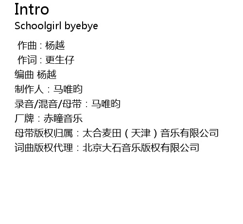 | [00:39.85] | 母带版权归属:太合麦田(天津)音乐有限公司 |