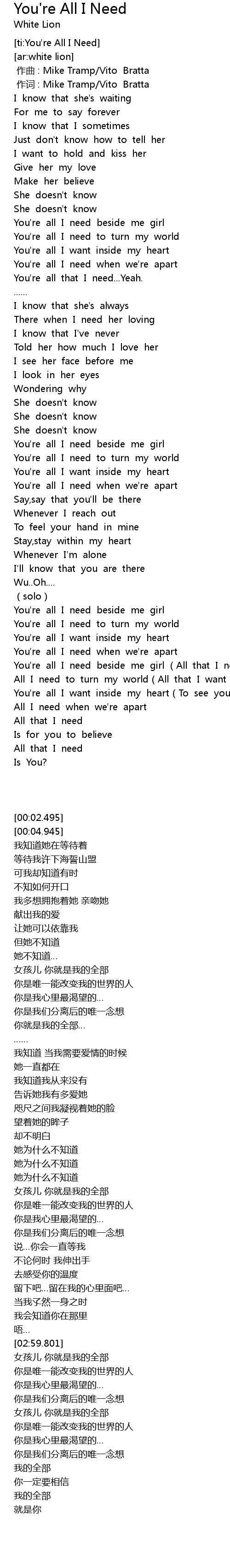 | [03:38.919] | You're all I need beside me girl (All that I need ) |