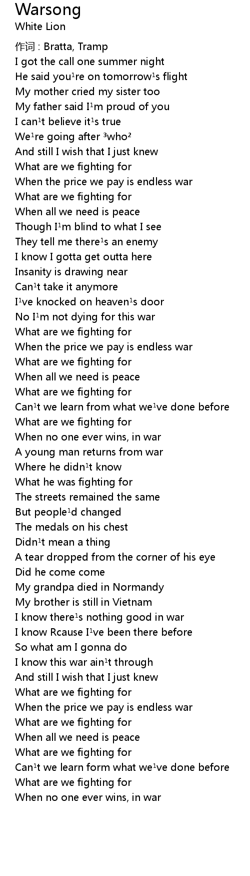 | I know there s nothing good in war | |