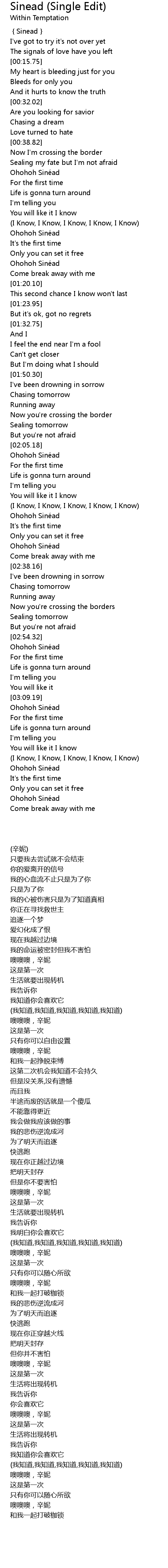 | [00:00.84] | Sinead |