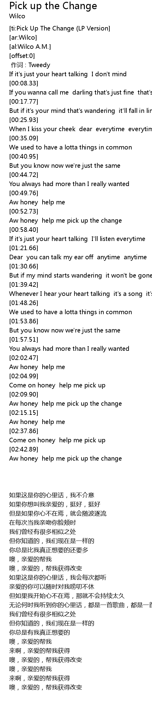 | [ti:Pick Up The Change (LP Version] | |