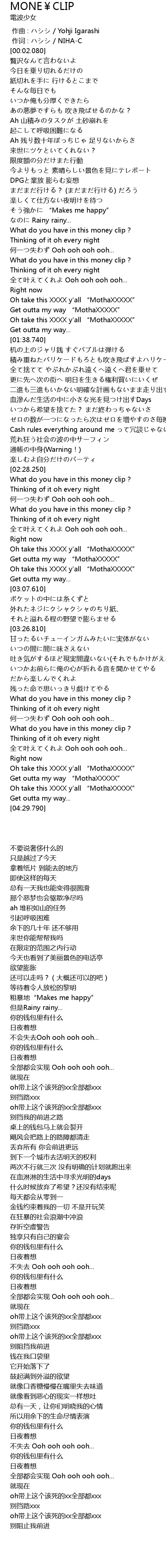 | [03:00.870] | oh带上这个该死的xx全部都xxx |