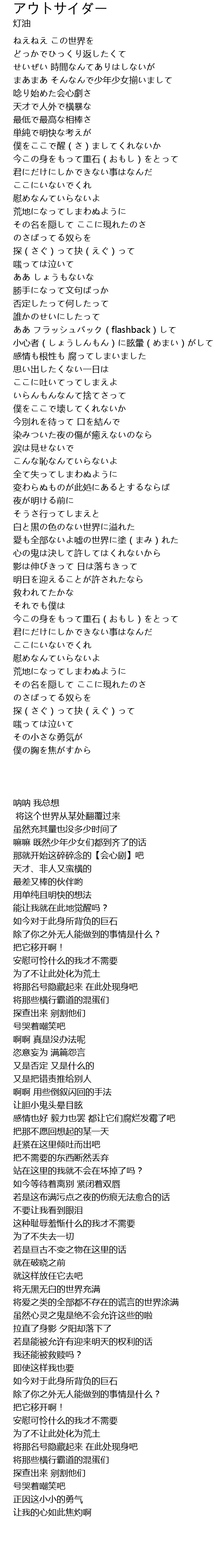 | 歌曲 | アウトサイダー |