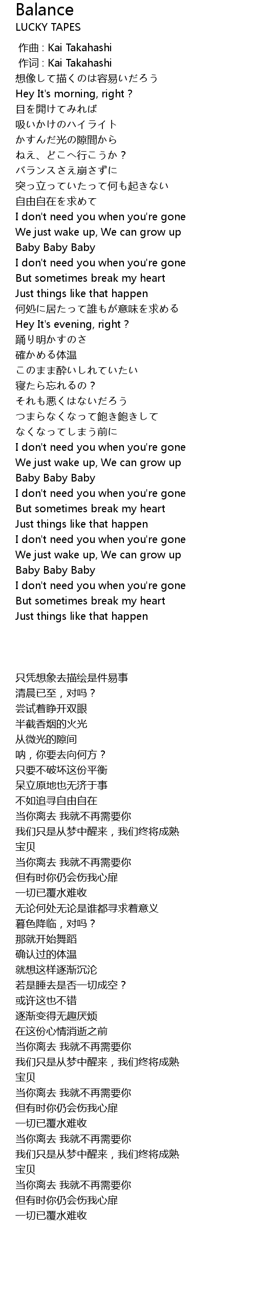 | [00:01.000] | 作词 : Kai Takahashi |