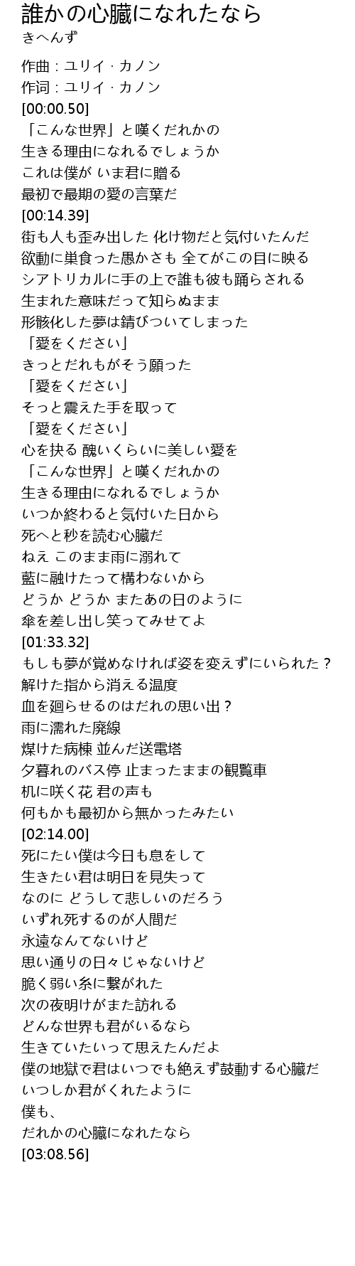 | [03:02.15] | だれかの心臓になれたなら |