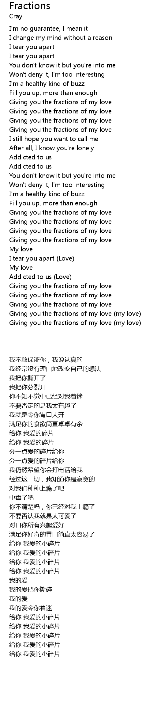 Giving you the fractions of my love |