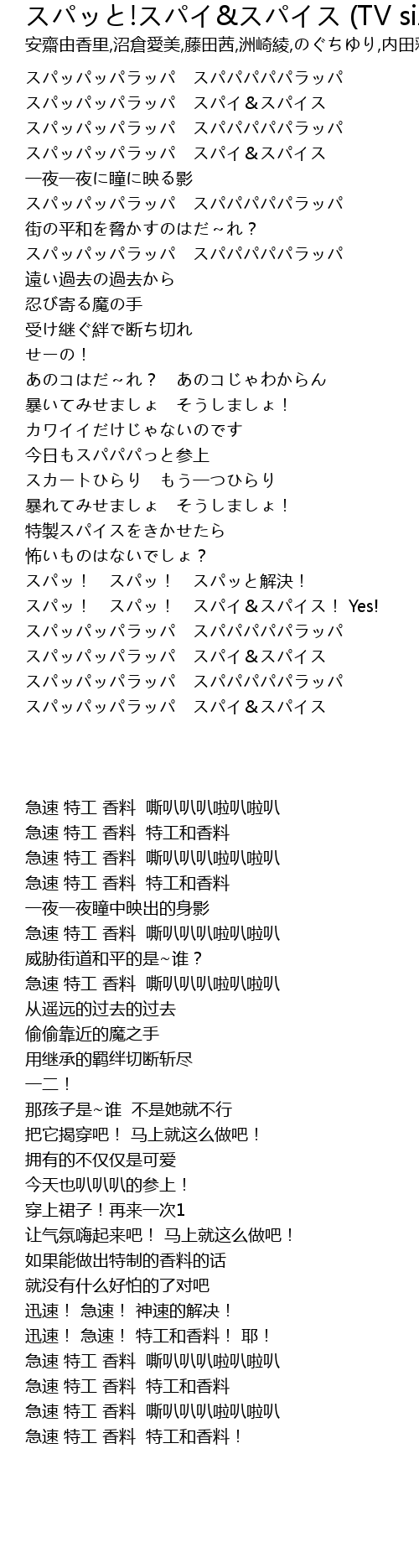 | [00:14.57] | スパッパッパラッパ スパイ&スパイス |