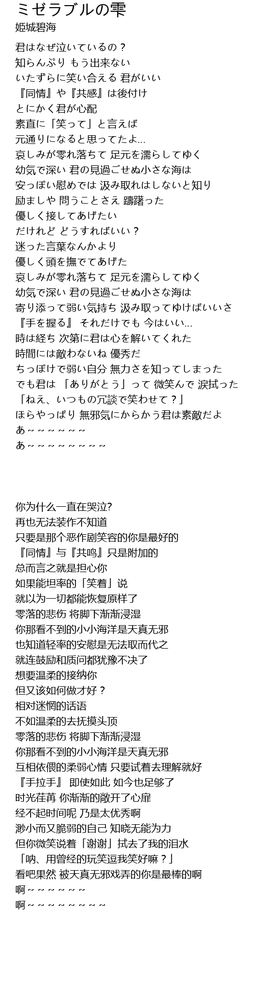 | [03:40.000] | 「ねえ、いつもの冗談で笑わせて?」 |