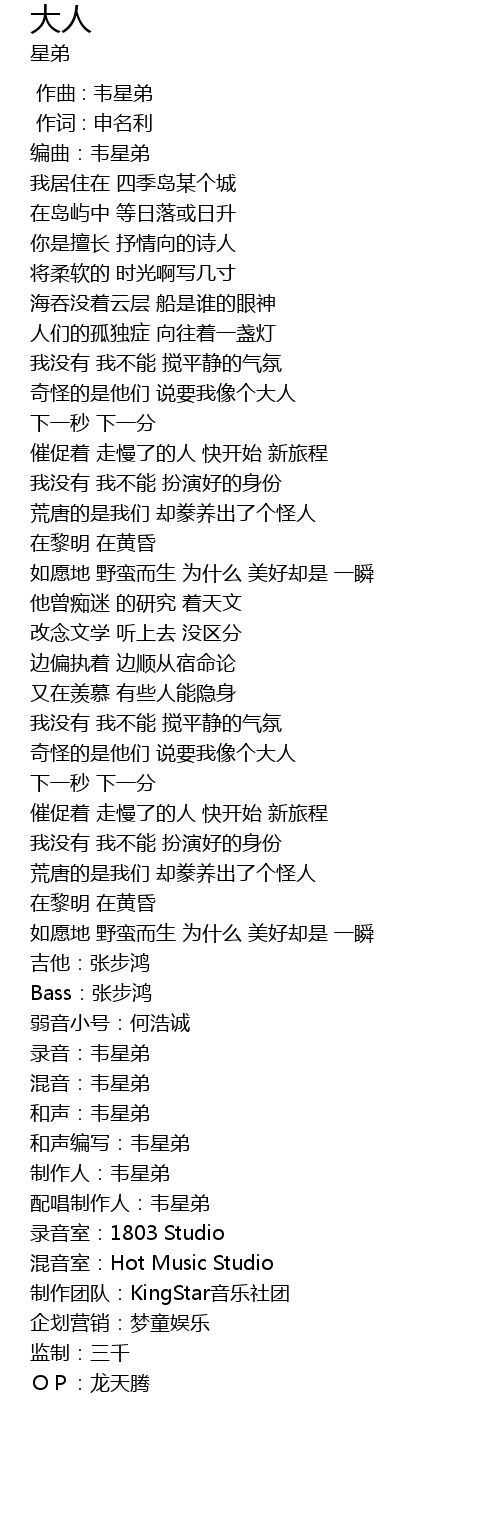 | [00:02.10] | 编曲:韦星弟 |