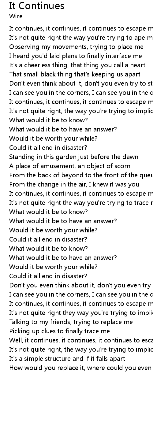 It continues, it continues, it continues to escape me |