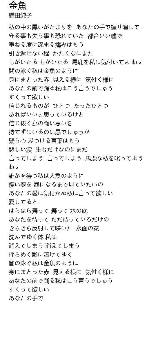 | [04:17.41] | 闇の泳ぐ私は金魚のように |