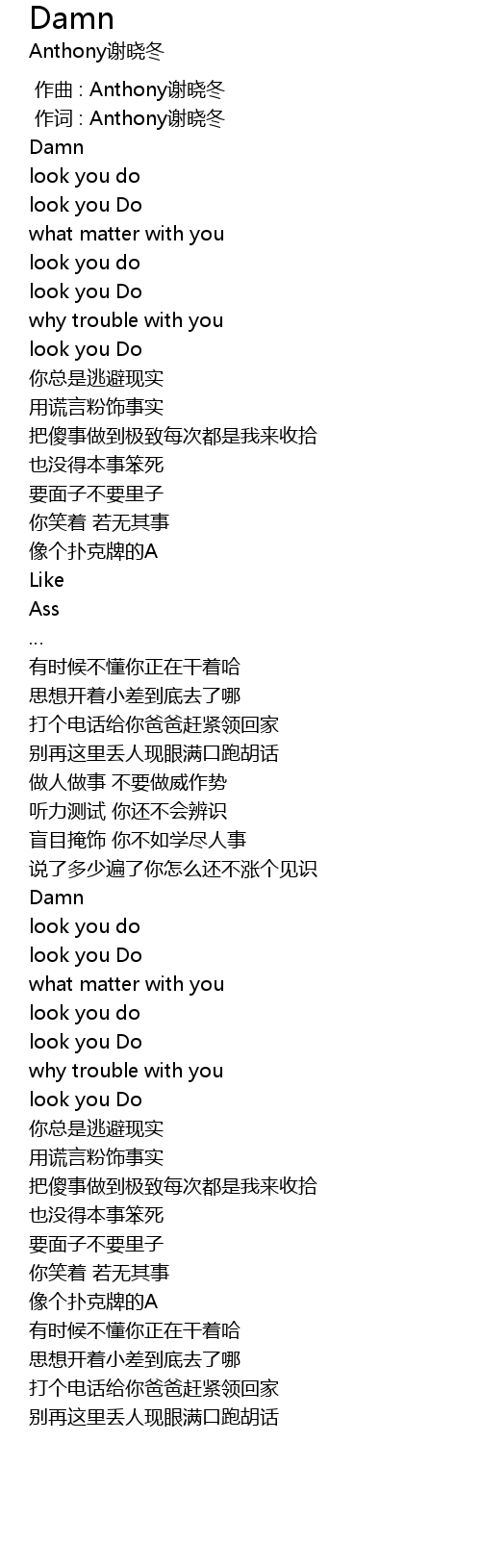 | 歌曲 | Damn |