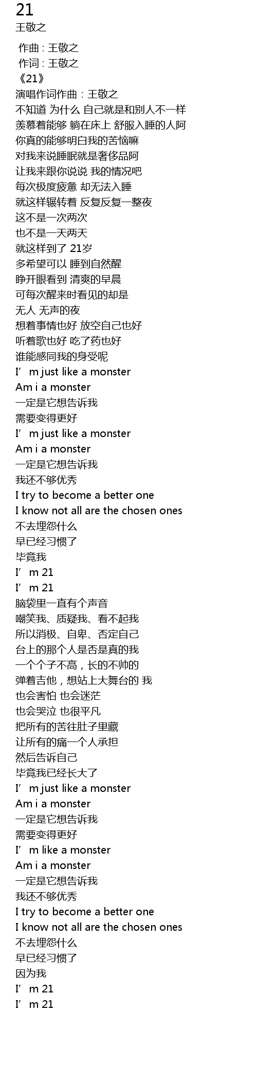 | [00:42.00] | jiù zhè yàng dào le 21 suì |