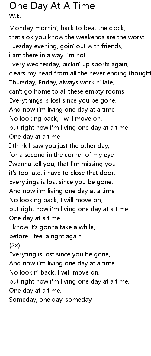 | but right now i'm living one day at a time | |
