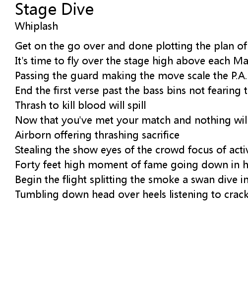 End the first verse past the bass bins not fearing the 30 foot drop |