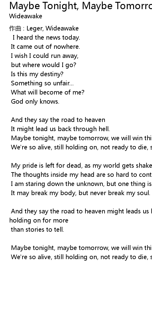 | 歌曲 | Maybe Tonight, Maybe Tomorrow |