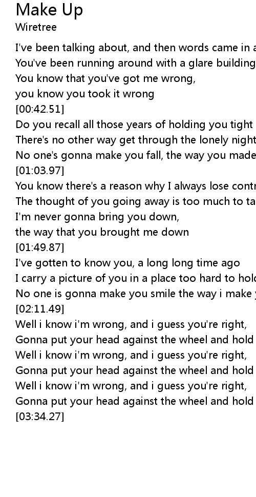 | [03:22.40] | Well i know i'm wrong, and i guess you're right, |