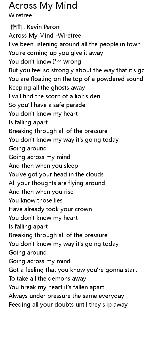 | [00:00.00] | Across My Mind Wiretree |