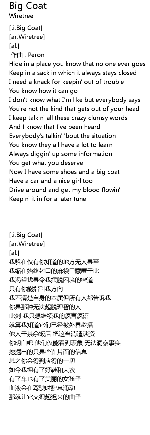 | [01:48.63] | 如今我拥有了好鞋和大衣 |