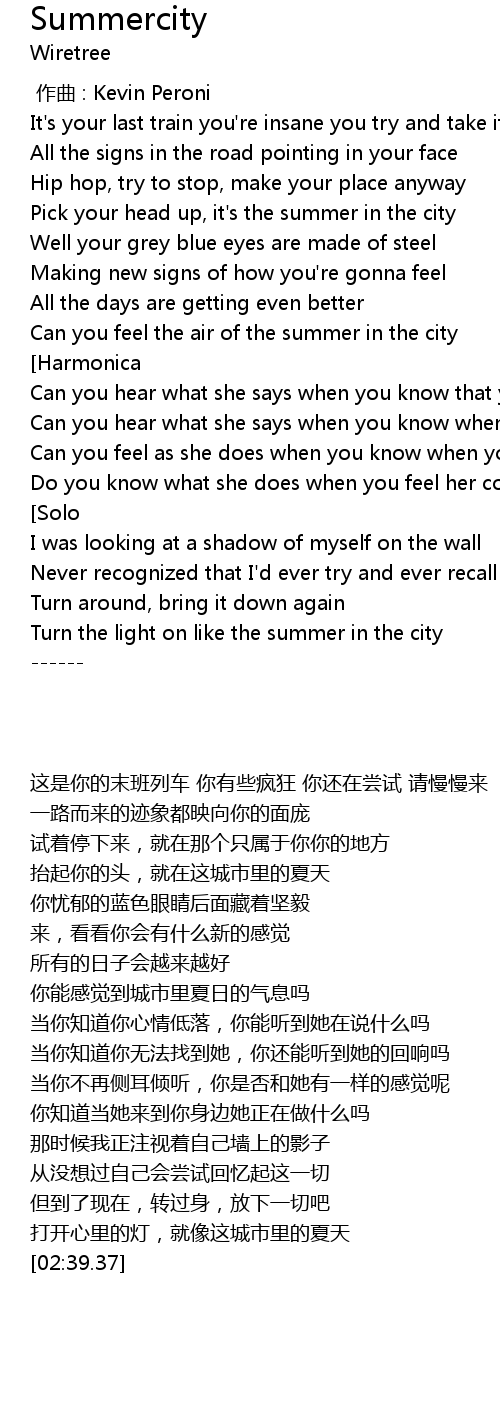 | [00:31.10] | Pick your head up, it' s the summer in the city |