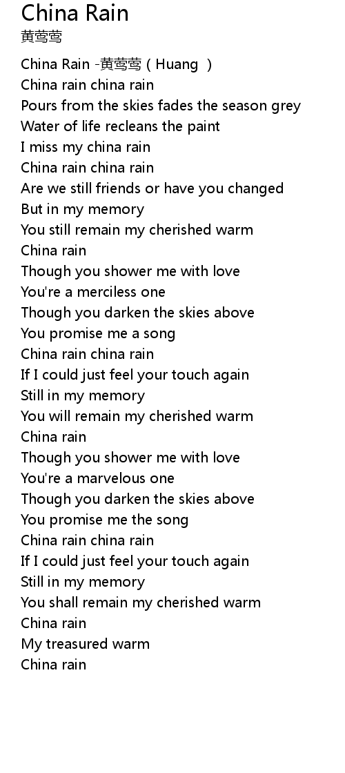 | [00:38.748] | I miss my china rain |