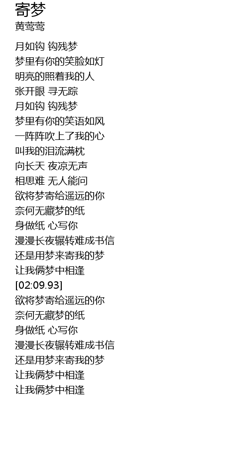 | [01:57.32] | 还是用梦来寄我的梦 |