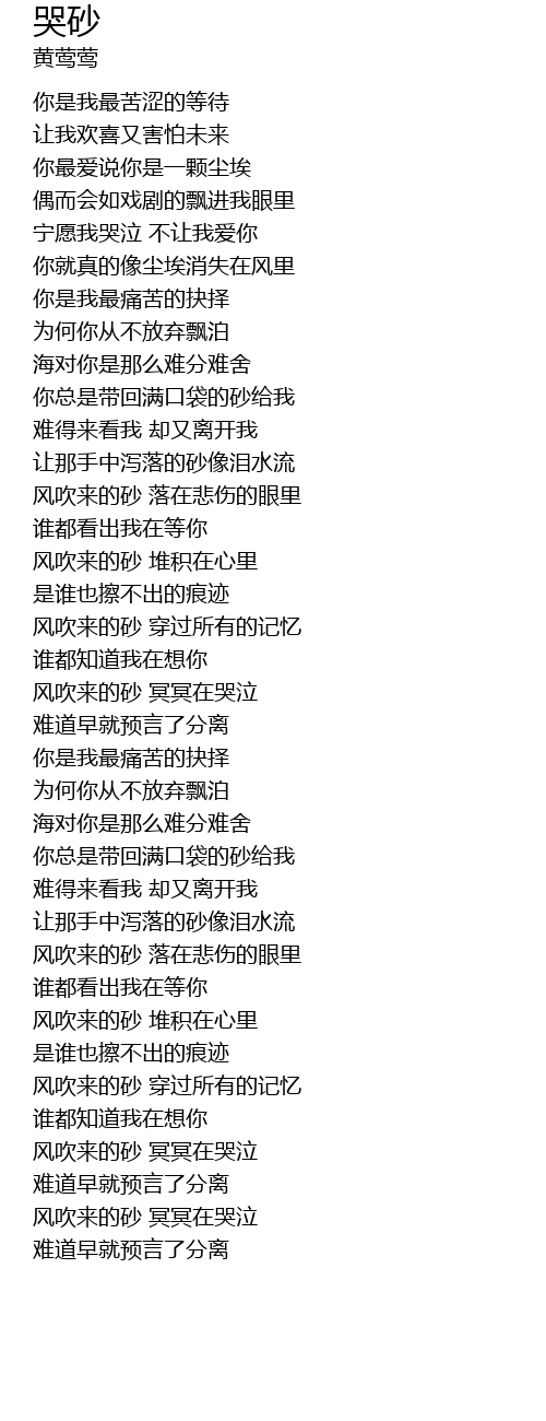 | 歌曲 | 哭砂 |