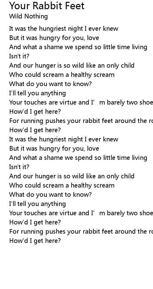 | 歌曲 | Your Rabbit Feet |