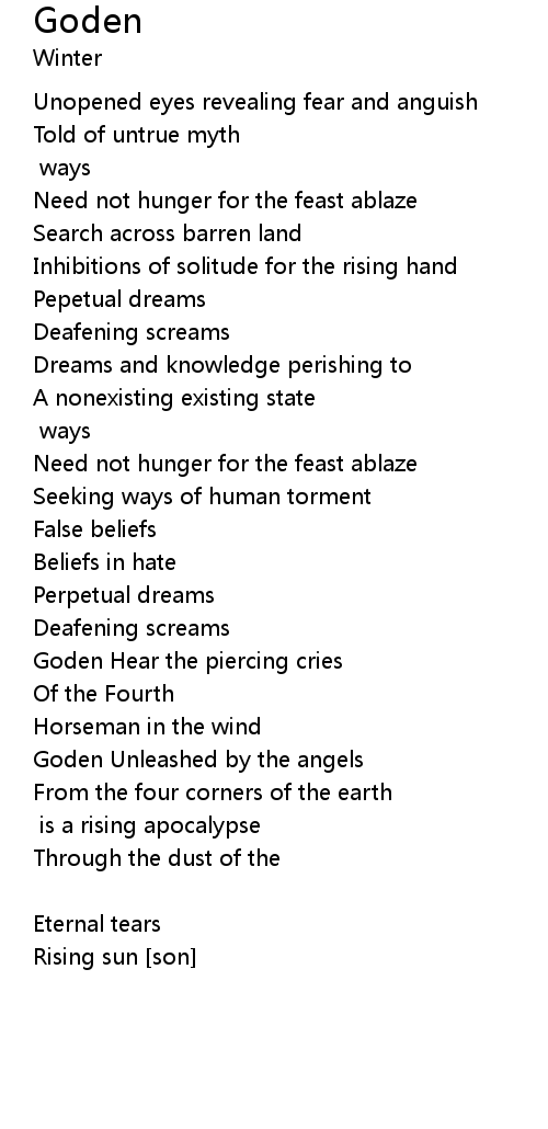 Goden Hear the piercing cries |