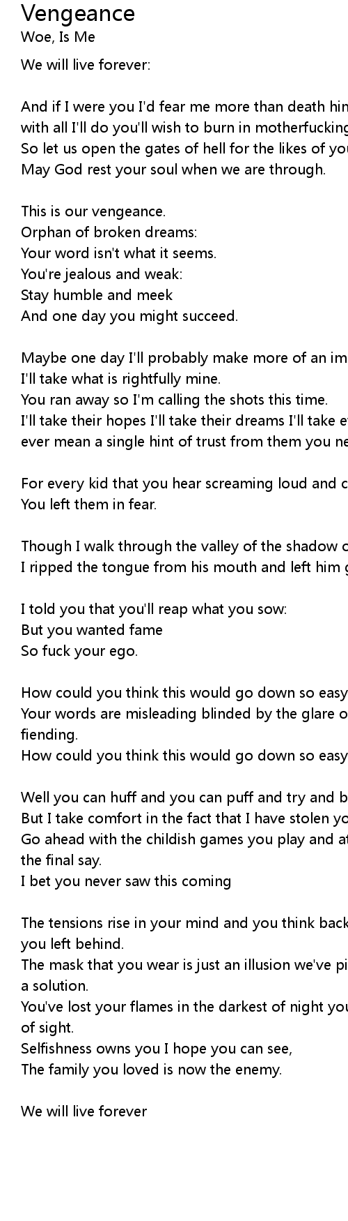 I'll take their hopes I'll take their dreams I'll take everything that would ever mean a single hint of trust from them you never cared so I will always win. |