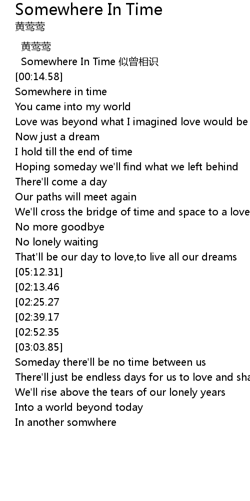 | [05:02.57][02:52.35] | Somewhere in time |