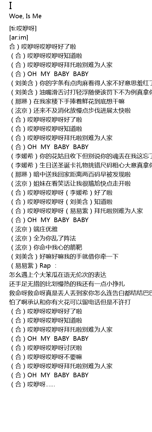 | [01:53.841] | (合)哎咿呀哎咿呀(易易紫)拜托啦别难为人家 |