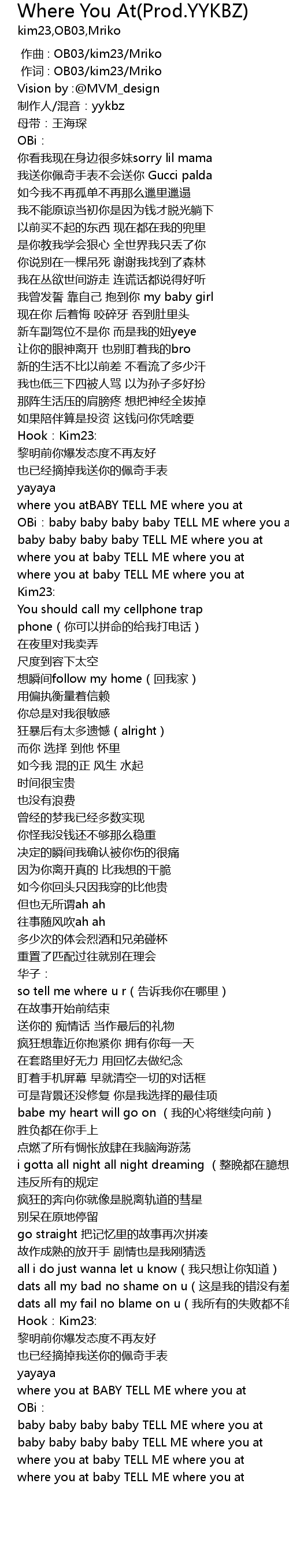 | [01:24.00] | OBi:baby baby baby baby TELL ME where you at |