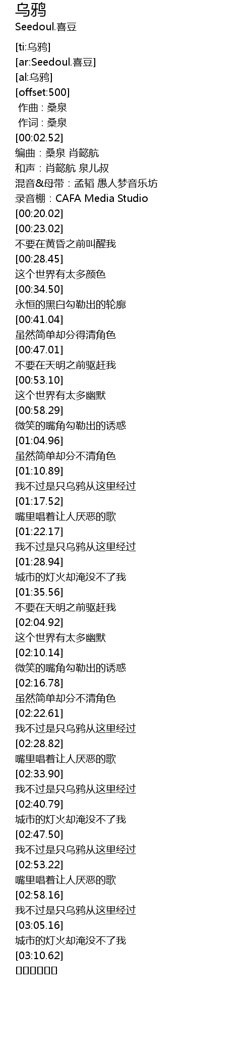 | [03:00.51] | 我不过是只乌鸦从这里经过 |