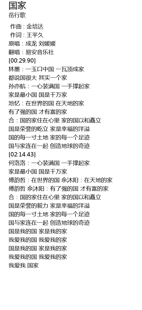 | [03:42.21] | 我爱我的国 我爱我的家 |
