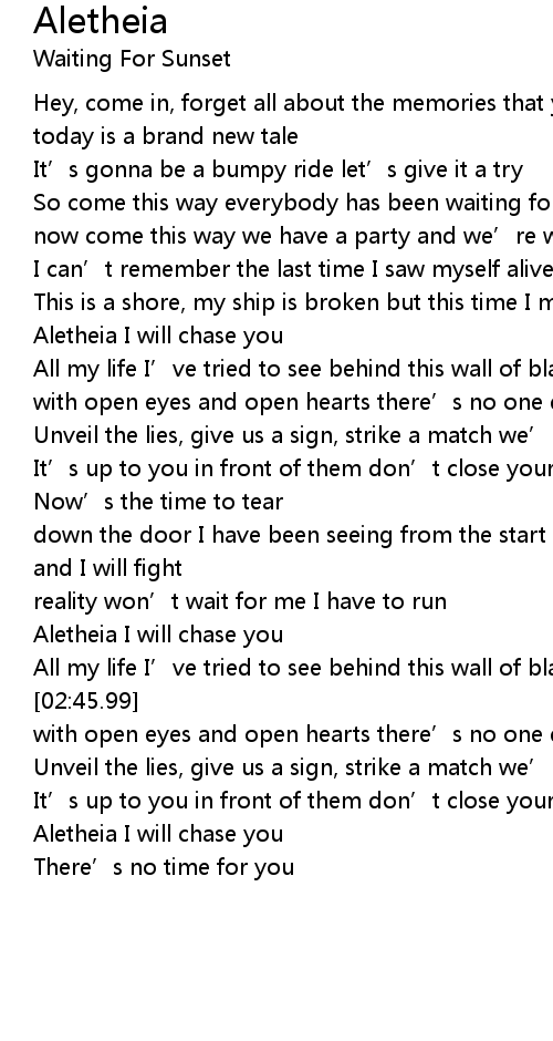 | [03:02.54] | Aletheia I will chase you |