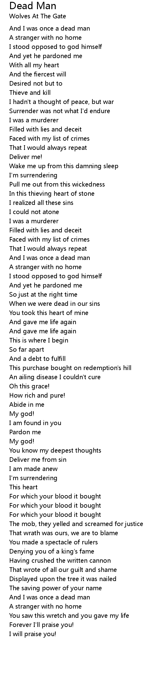 And I was once a dead man |